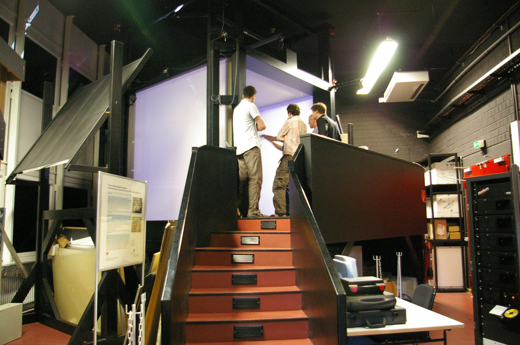 こちらの写真はベルリン工科大学のcave。スクリーンは3枚だが、映像の質がIPKに比べて格段に高い。ソフトウェアの問題で絵を描く事はまだできていない。