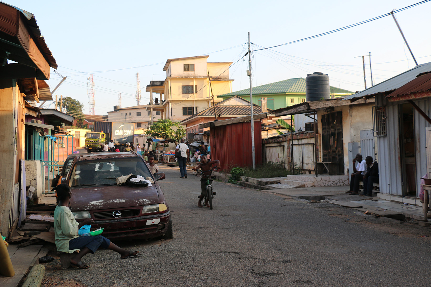 首都アクラ。街の中心に舗装された道路が僅かにある以外は土の道路。歩道も穴だらけでなかなか危険。ちなみに、ガーナは詐欺が多いらしく、入国審査のときにさっそくお金をせびられました。いったいいくら出せるのかと何度も聞かれたものの、これは怪しいと気づいて拒否し続けると、そのまま通してくれました。