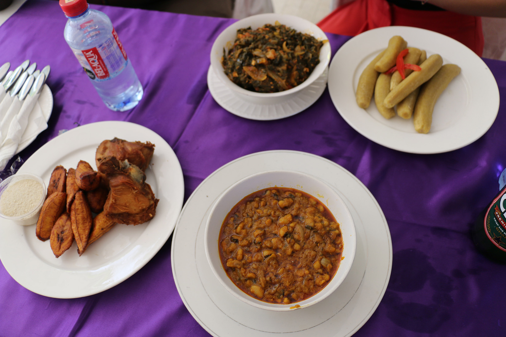 左のお皿がバナナのフライ。右のお皿はバナナの見た目で味はポテトの野菜。